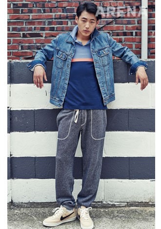 피케 셔츠 2만9천9백원 유니클로, 데님 트러커 재킷 39만8천원 아페쎄, 스웨트 팬츠