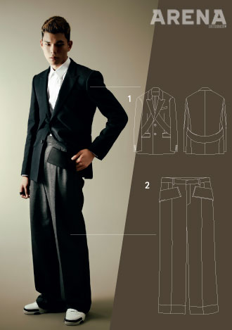 우선 다소 복잡해 보이는 코트부터 살펴보자. 사실 이 코트는 양면으로 입을 수 있게 디자인되었다. 사진에서 보이는 부분이 실질적인 안감에 속하는 셈(앞면은 의외로 단순하다). 뒤집어 입은 듯한 게 나름의 콘셉트이니 라벨이 보인다고 노여워할 필요 없다.