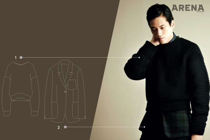 이번 시즌 제냐 꾸뛰르 컬렉션에 나온 룩이다. 복잡한 디자인은 하나도 없다. 옷 하나하나를 놓고 보면 평범하다. 하지만 입는 방식과 순서에 설명이 필요하다. 우선 일반적인 방법으로 셔츠 위에 재킷을 입고 타이까지 맸다. 그런 다음 길이가 짧고 품은 넉넉한 니트를 그 위에 입는다. 추워서 어쩔 수 없이 껴입은 것처럼 보일 수 있지만 나름 재미있는 레이어드 방식이다.