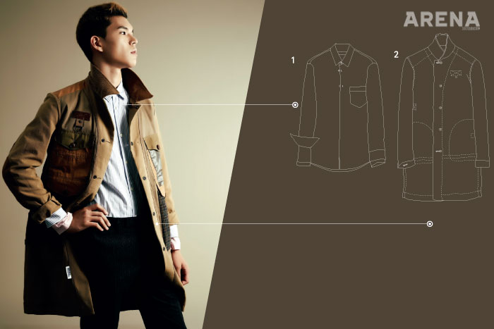 그리고 셔츠는 기본적인 형태에 소매 끝 부분만 이중으로 된 구조다. 소매를 걷으면 마치 겹쳐 입은 듯한 착각을 불러일으킨다.