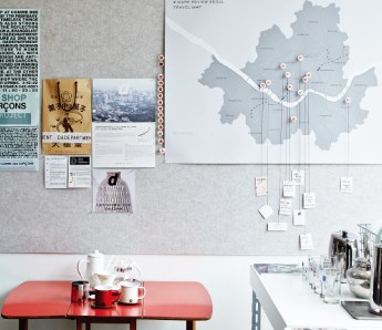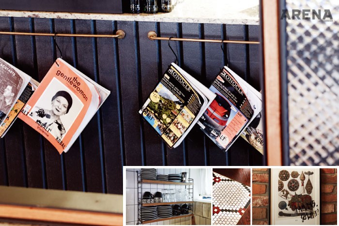좁은 공간은 오히려 작은 디테일로 꾸미는 재미가 있다. 코발트 숍 팀원들의 손길이 직접 닿은 카페 코발트는 작은 공간을 알뜰하게 꾸밀 수 있는 유용한 힌트로 가득하다. 지루할 수도 있는 짙은 나무 바닥 중간쯤 타일 바닥을 일부 깔아 재미를 줬고, 평범한 유리 액자에 인상 깊은 문구를 호방한 글씨체로 적어 넣었다. 또 하나하나 구멍을 뚫어 옷처럼 걸어 진열한 책들도 좋은 인테리어 아이디어다. 부족한 손재주를 걱정할 필요 없다. 의외로 간단하니까.