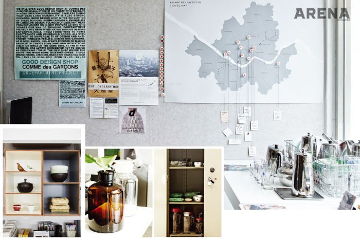 물건을 잘 버리지 못 하는 사람이 있다. 그런 사람에게는 필요 없는 물건이란 없다. 만일 조금만 영리하다면, 물건을 인테리어에 활용할 수도 있을 것이다. 한남동에 위치한 디앤디파트먼트가 좋은 예다. 과거 일본에서 매장 오픈을 기념하기 위해 제작한 타이포그래피가 돋보이는 포스터, 단순하게 묘사한 서울 지도, 오래된 쇼핑백 등 자질구레해 보이는 것들로 한쪽 벽면을 알차고 감각적으로 꾸몄다. 물건을 담고 있는 패키지도 감각이 묻어난다. 필요 없는 물건이란 없다.