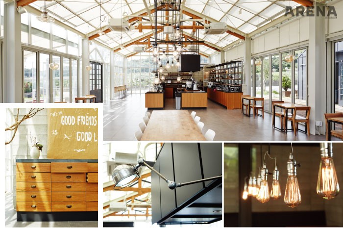 조명은 인테리어에 지대한 영향을 미친다. 불을 껐을 때나 켰을 때 항상 보기 좋은 것을 고르는 것이 중요하다. 한적한 농촌 마을에 있는 알렉스 더 커피는 호방하고 세련된 외관은 물론 인테리어에도 신경을 썼다. 특히 공간마다 각기 다른 감각적인 조명이 눈에 띈다. 직선적인 전체 인테리어와 잘 어울리는 수직으로 떨어지는 조명과 조리대 위로 빛이 떨어지는 위치에 달아둔, 픽사의 상징 캐릭터 ‘룩쏘’를 닮은 조명까지 실용적인 면에서나 심미적으로나 모두 군더더기 없다.
