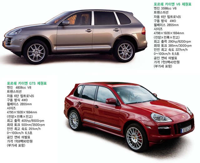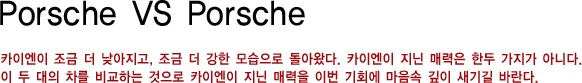 카이엔이 조금 더 낮아지고, 조금 더 강한 모습으로 돌아왔다. 카이엔이 지닌 매력은 한두 가지가 아니다.이 두 대의 차를 비교하는 것으로 카이엔이 지닌 매력을 이번 기회에 마음속 깊이 새기길 바란다.<br><Br>[2008년 3월호]