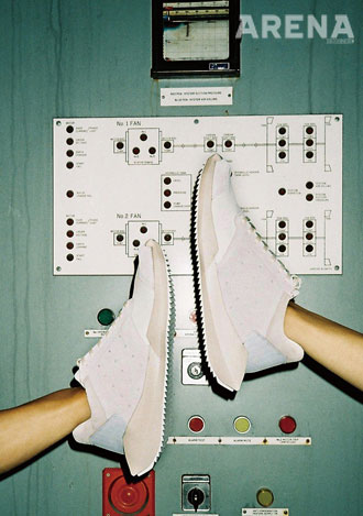 두 번째로 아디다스와 협업 제품을 내놓았다. 그는 이번에도 기존 스니커즈의 틀을 무참히 깨부쉈다. 아웃솔을 과감하게 확장해 보다 날렵하고 미래지향적으로 디자인한 것. 차마