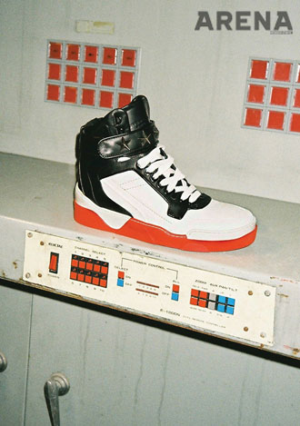 이번 시즌 지방시가 내놓은 스니커즈의 면면을 보면 나이키의 에어조단을 닮았다는 것(실제로 지난 시즌 나이키와 협업한 바 있다)을 알 수 있다. 다른 점이 있다면 하이톱 상부 스트랩에 위치한 별 모양 스트랩 정도. 리카르도 티시는 나이키와 농구에 남다른 애착이 있는 게 분명하다. 참고로 지방시의 이번 시즌 테마는 농구다. 가격미정.