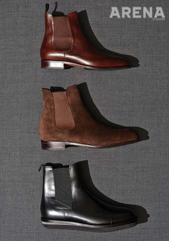 (위부터) 밤껍질처럼 반질한 사이드 고어 부츠 67만9천원·고동색 스웨이드 사이드 고어 부츠 67만9천원 모두 까르미나 by 유니페어, 쿠셔닝이 좋은 검은색 사이드 고어 부츠 49만5천원 시스템 옴므 제품.