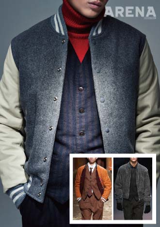 가죽과 울 소재로 된 바서티 재킷 47만8천원 골든 베어 by 플랫폼 플레이스, 줄무늬 베스트
