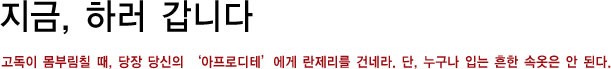 고독이 몸부림칠 때, 당장 당신의 `아프로디테`에게 란제리를 건네라. 단, 누구나 입는 흔한 속옷은 안 된다.<br><br>[2008년 4월호]