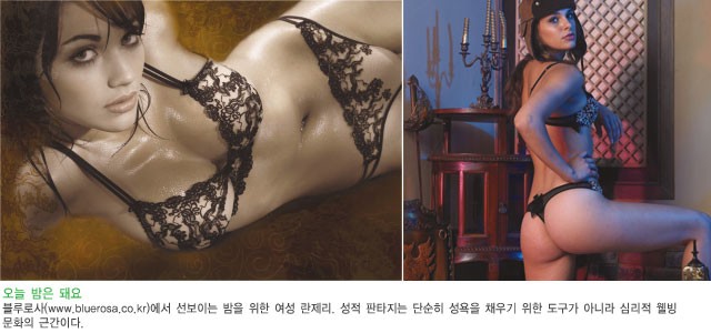 남자들의 판타지는 무엇일까? 커다란 스크린 위에 남녀 주인공의 격정적인 정사신이 펼쳐진다. 낮은 숨소리가 극장 안을 채운다. 당신의 손끝은 그녀의 희고 긴 다리 위에 올려진 채 떨고 있다. 영화가 끝나고 모텔로 자리를 옮긴다. 풀을 빳빳하게 먹인 이불의 바스락거리는 감촉이 자극적이다. 한 손이 그녀의 다리 사이를 더듬고, 다른 한 손은 그녀의 옷을 끌어내린다. 파격적인 하룻밤이 지나간다. 이것뿐이다. 남자들의 판타지는 고작 이거다. 여자들과 공유할 판타지는 없다. 아니면 어두운 골목길에서 낯선 여자를 강간하거나, 난잡한 스리섬을 생각하는 게 전부. 이제 남자들은 ‘여자가 원하는 판타지’를 배워야 한다. 낭만도 없고, 사랑도 없고, 환상도 없는 남자들만의 판타지는 끝내는 것이 좋다. 그 대신 란제리로 새로운 판타지를 머릿속에 주입시키는 건 어떨지. 훤히 비치는 ‘슬립’을 입은 그녀가 촛불을 켠다. 보라색 아로마 초가 불타는 동안 매혹적인 향기가 그녀를 감싼다. 슬립 사이로 보이는 유럽풍의 실크 란제리. 그녀는 당신이 야수처럼 그것을 찢어줄 거라 기대한다. 검은색 레이스의 ‘가터벨트’ 아래로 미끈하게 흘러내린 다리를 부드럽게 애무한다. 그녀의 발가락이 가볍게 떨린다. 혀가 부드러운 어깨를 스치자 등줄기에 난 가녀린 털이 일어선다. 풍만한 히프가 그대로 드러나는 통을 살짝 젖히고, 야생적인 섹스를 시작한다. 그녀의 ‘가식적인’ 신음 소리가 입술 사이로 비어져 나온다. 아마 그녀는 당신이 그 소리에 미쳐버릴 거라 믿는다. 그것이 바로 당신의 판타지라 믿고 있으니까. 이제 남자들은 자신의 저급한 판타지를 내버리고, 그녀를 만족시킬 판타지를 준비해야 한다. 그녀에게 세상에서 가장 부드럽고 아름다운 란제리를 선물하자. 그녀가 원하는 ‘당신의 판타지’를 시작하라. 세상에서 가장 로맨틱한 밤을 그녀와 공유할 수 있을 거다. 단, 누구나 입을 수 있는 그런 흔한 속옷은 안 된다. 판타지를 순식간에 무너뜨릴 수 있으니. Words 정초신