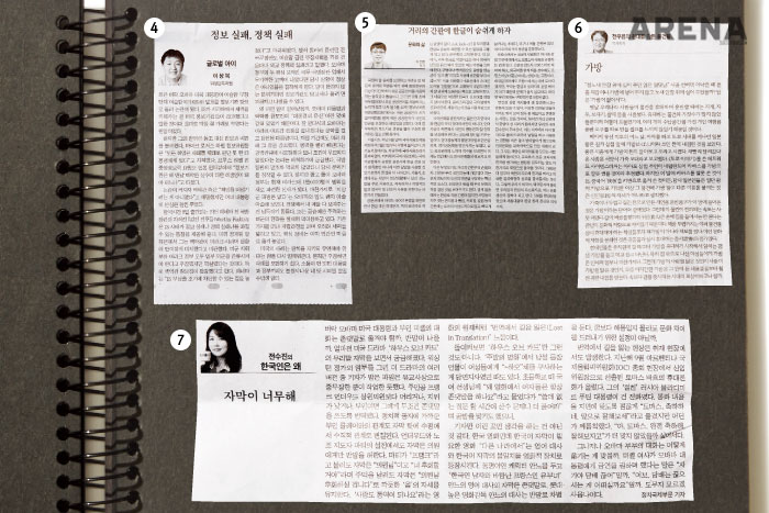 사회부, 경제부, 산업부, 문화부, 디지털뉴스부 기자들이 돌아가며 쓴다. 입장이 분명하게 드러나는 글이 많다. 정부나 공공기관의 정책에 대체로 회의적이다. 매체의 논조라고 단정 짓는 게 가능할지 모르겠지만, 그 와중에 균형을 잡으려는 의지도 보인다. 비판하는 쪽의 최소한의 당위는 다른 쪽의 의견을 듣는 것이다. 모든 글이 명료하다. 그런데 중앙일보의 <글로벌 아이>처럼 이 칼럼 역시 어떤 의문의 영역이 없다. 입장을 피력하는 글에서 그 영역이 없다면 독자는 그저 고개만 끄덕일 수 있을 뿐이다. 목 놓아 주장하는 것만으로 진보는 보수를 이길 수 없다. 당연히 독자도 감동시킬 수 없다. 매주 화요일과 목요일, 한국일보.