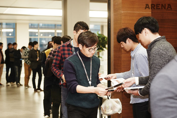 삼성전자 사내 교육 사상 역대급 참여 인원이었다는 소식을 접했다. 그야말로 감개무량. 지난 10월 28일, 6백여 명의 삼성전자 직원들이 수원에 위치한 삼성전자 모바일 홀에 집결했다. <아레나>가 준비한 ‘맨즈 업 프로젝트’에 참석하기 위해서였다. 삼성전자 직원들이 바라던 대로, 이번 ‘맨즈 업 프로젝트’는 남자들이 가장 관심 있는 아이템인 시계와 스타일에 관한 클래스로 준비되었다. 옷을 잘 입고 싶지만, 바쁜 업무로 인한 한계는 분명 존재할 거다. 시계 및 패션 전문가의 경험과 날 선 가르침은 삼성전자 직원들에게 멋진 스타일이라는 지향점과 조우하게 했을 게 분명하다. 그만큼 클래스의 내용은 충실했고, 실용적이었다.