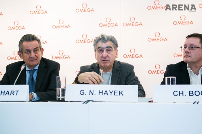스와치 그룹 CEO 닉 하이예크(Nick Hayek)와 METAS의 디렉터 크리스티앙 보크 박사(Dr. Christian Bock), 오메가 사장 스티븐 우콰트(Stephen Urquhart), 오메가의 부사장 레이날드 에슐리만(Raynald Aeschlimann)과 안드레아스 홉메이어(Andreas Hobmeier)가 이 자리에 함께 했다.