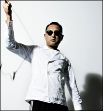 화이트 셔츠와 재킷은 꼼 데 가르송, 트레이닝 팬츠는 컨버스, 신발은 a.c.c, 보잉 선글라스는 레이밴 제품.