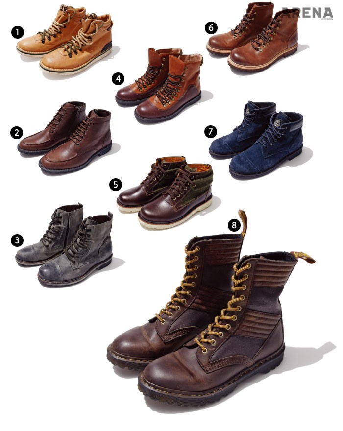 4 빈티지한 가죽 소재에 양털 안감과 빨간색 가죽 디테일로 멋을 더한 부츠 33만8천원 소다 옴므 제품.