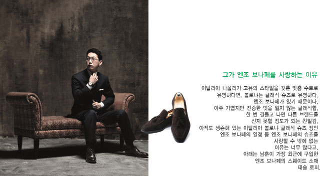 남훈은 ‘남성 클래식 멀티 브랜드 숍’을 표방하는 ‘란스미어(Lansmere)’를 통해 세계적인 클래식 브랜드를 엄선하여 국내에 소개하고, 그 가치를 알리는 클래식 패션 계몽에 열을 올리고 있다. 이런 그의 열의는 그가 사랑하는 클래식 슈즈, 그중에서도 브라운 컬러 슈즈를 통해 극명하게 드러난다.
