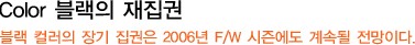 블랙 컬러의 장기 집권은 2006년 F/W 시즌에도 계속될 전망이다.