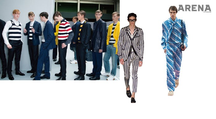줄무늬는 클래식한 여름 패턴 중 하나다. 이번 시즌에도 어김없이 주를 이뤘다. 물론 달라진 점이 있다. 그 모습이 훨씬 다채롭다. 다소 식상한 머린풍 줄무늬 외에도 다양한 변종을 확인할 수 있는 것. 우선 빈티지한 색감을 더한 사선 줄무늬가 있다. 같은 패턴의 머플러와 셔츠, 바지를 한 번에 매치해 강렬한 인상을 남긴 J.W. 앤더슨, 1970년대 풍 셔츠와 스웨터를 선보인 프라다 컬렉션이 여기 속한다. 1990년대 감성을 지닌 굵은 줄무늬도 있다. 디올 옴므에 등장한 굵은 줄무늬 슬리브리스와 에르메네질도 제냐의 줄무늬 스웨터 등이 그 예. 고상한 선원을 그린 구찌 컬렉션은 흔한 가로 줄무늬 대신 굵은 세로 줄무늬를 택해 틀에 박힌 머린 룩에 변화를 꾀했다.