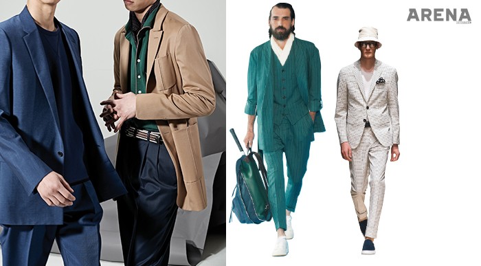 공식대로 차려입은 포멀 룩이 런웨이에서 점점 줄어드는 추세다. 그 자리를 채운 건 여유로운 수트. 크게 두 가지 줄기로 설명할 수 있는데, 하나는 수트 자체의 실루엣이다. 피팅감 자체가 느슨해졌다는 뜻이다. 에르메네질도 제냐와 크리스토퍼 뤼미에르의 넉넉한 실루엣이 바로 그러한 경우다. 다른 하나는 스타일링 방식이다. 발렌시아가와 폴 스미스를 비롯한 대부분의 컬렉션에서 수트와 티셔츠의 만남을 목격할 수 있었다. 아무렇게나 휘두른 스카프, 수트와 버킷 해트의 조화 역시 수트의 딱딱함을 덜어내는 장치로 작용했다. 경쾌한 색으로 포멀함을 중화한 경우도 있다. 밝은 회색 수트에 개나리색 폴로 셔츠를 매치한 볼리올리와 다홍색과 겨자색을 곳곳에 끼워 넣은 까날리 등이 그렇다.