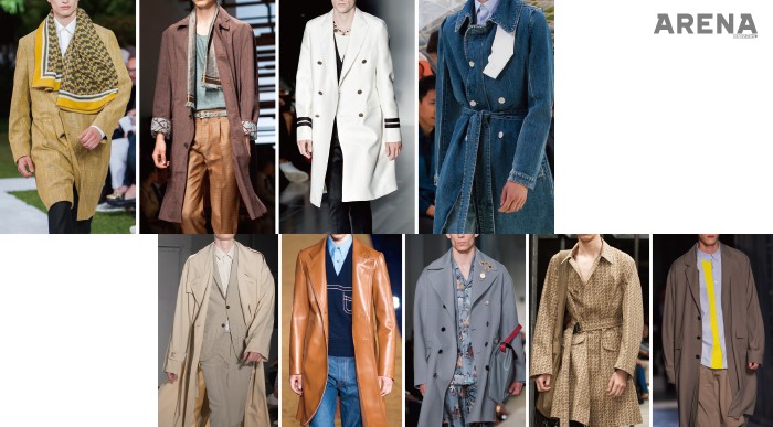 봄과 여름을 위한 컬렉션임에도 불구하고 무릎까지 내려오는 코트가 쏟아져 나왔다. 소재 역시 다양하다. 고상한 벨루티의 코트는 부드러운 리넨, 모범생 같은 프라다의 코트는 매끈한 가죽, 우아한 구찌의 코트는 새틴, 장난스러운 겐조의 트렌치코트는 데님, 나른한 하이더 아커만의 로브는 실크로 만들었다. 조르지오 아르마니의 벨티드 롱 코트와 바람이 불면 가볍게 날릴 것 같은 살바토레 페라가모의 코트, 둥근 실루엣이 매력적인 발렌티노의 코트는 특히 아름다웠다. 본격적인 더위가 시작되기 전까진 코트를 염두에 두길 바란다.