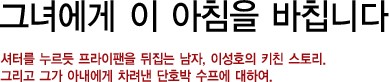 셔터를 누르듯 프라이팬을 뒤집는 남자, 이성호의 키친 스토리. 그리고 그가 아내에게 차려낸 단호박 수프에 대하여.<br><br>[2006년 9월호]