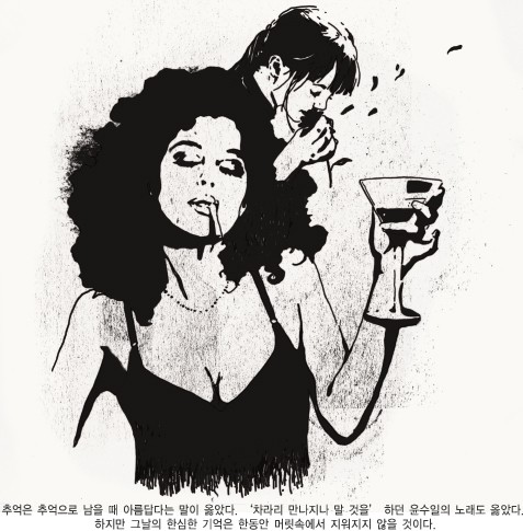 지하를 빠져나와 새벽 공기를 마시면서는 알 수 없는 웃음이 났다. 유통기한이 지난 감상에 빠져 있는 자신이 우스워서. 어쩌자고 이런 꼴을 본 걸까, 너무 한심해서. 집으로 돌아가는 택시 안에서 ‘어느 날, 나는 다시 그 지하 주점을 찾아가게 될까?’라고 자문했다. 답을 내리지는 못했다. 다만, 창문을 내리고 담배를 입에 물었다.