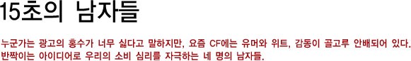 누군가는 광고의 홍수가 너무 싫다고 말하지만, 요즘 CF에는 유머와 위트, 감동이 골고루 안배되어 있다. 반짝이는 아이디어로 우리의 소비 심리를 자극하는 네 명의 남자들.<br><br>[2008년 7월호]