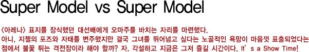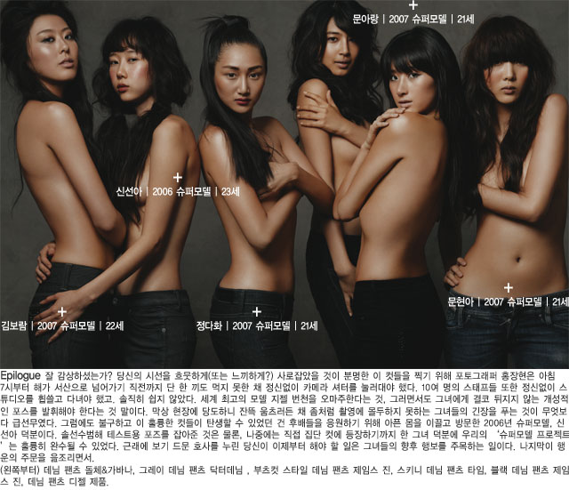<아레나> 표지를 장식했던 대선배에게 오마주를 바치는 자리를 마련했다. 아니, 지젤의 포즈와 자태를 변주했지만 결국 그녀를 뛰어넘고 싶다는 노골적인 욕망이 마음껏 표출되었다는 점에서 불꽃 튀는 격전장이라 해야 할까? 자, 각설하고 지금은 그저 즐길 시간이다. It`s a Show Time! <br><br>[2008년 7월호]