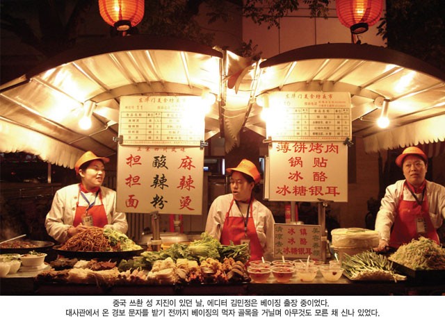 중국 쓰촨 성 지진이 있던 날, 에디터 김민정은 베이징 출장 중이었다. 대사관에서 온 경보 문자를 받기 전까지 베이징의 먹자 골목을 거닐며 아무것도 모른 채 신나 있었다. [2008년 7월호]