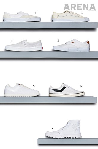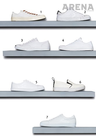 3 불필요한 디테일을 모두 생략했다. 캔버스 소재의 갑피, 미드솔, 앞코 그리고 신발끈까지 티끌 없이 하얗다. 화이트 스니커즈의 정석이다. 7만5천원.