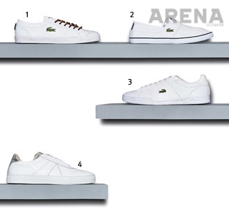 1 투박하게 커팅한 갈색 가죽 끈과 브랜드의 악어 로고가 흰 캔버스 소재를 배경으로 선명한 존재감을 드러낸다. 13만5천원.