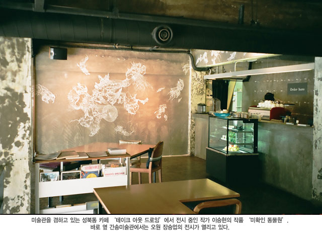 미술관을 겸하고 있는 성북동 카페 `테이크 아웃 드로잉`에서 전시 중인 작가 이승현의 작품 `미확인 동물원`. 바로 옆 간송미술관에서는 오원 장승업의 전시가 열리고 있다. [2008년 7월호]