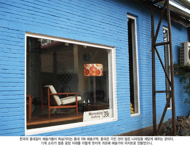 한국의 홍대같이 예술가들이 득실거리는 동네 798 예술구역. 중국은 가진 것이 많은 나라임을 깨닫게 해주는 곳이다. 기계 소리가 멈춘 공장 지대를 이렇게 멋지게 개조해 예술가의 아지트로 만들었으니.