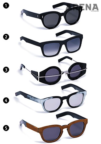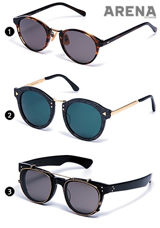 2. 나뭇결과 흡사한 질감 처리를 한 검은색 프레임이 독특하다. 38만원. 3 검은색 프레임의 클립-온 선글라스는 브랜드의 상징적인 제품이다. 51만원.
