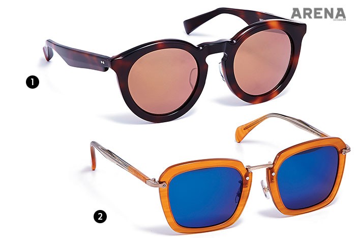 2. 난색의 각진 프레임과 청색 미러 렌즈가 강렬한 대비를 이룬다. 43만원.