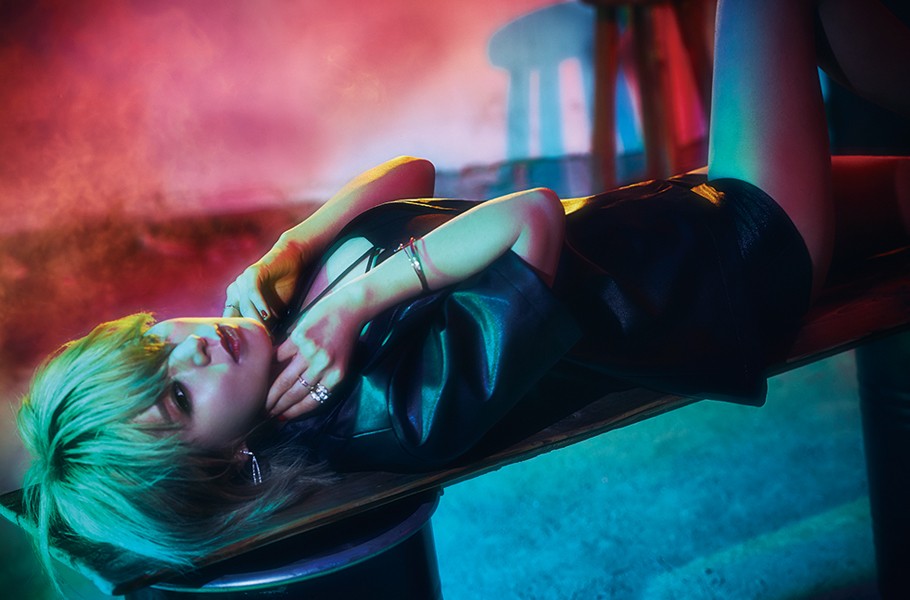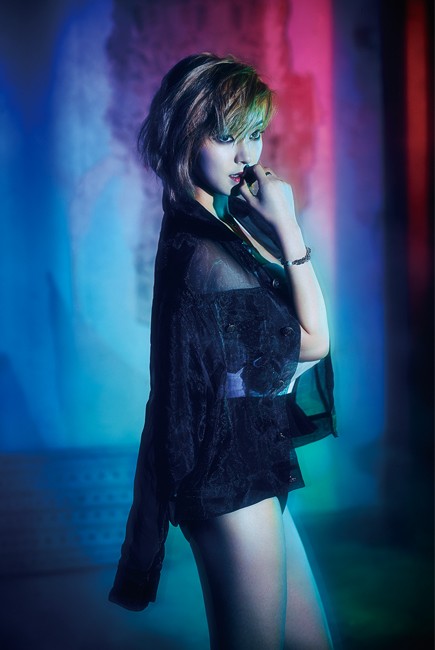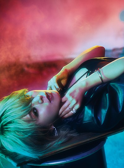 ▲ 가죽 상의는 아이진, 오른손 중지와 왼손 중지에 착용한 반지는 모두 스타일러스, 오른손 검지에 착용한 반지와 귀고리는 모두 스와로브스키, 오른팔의 뱅글은 러브캣, 팬츠와 톱은 모두 스타일리스트 소장품.