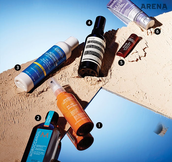 1. 윈터 그린과 시나몬 바크 오일에서 추출한 천연 자외선 차단제가 모발을 보호한다. 가벼운 미스트 타입에 물에 잘 녹지 않으며 16시간까지 효과가 지속된다. 썬 케어 프로텍티브 헤어 베일 100ml 3만2천원 아베다 제품.