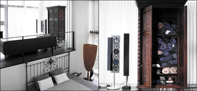 닉스, 어바웃, 카파, T 등 감각적인 브랜드를 론칭한 Bread&Butter의 홍선표 대표의 옷장은 2개로 나누어져 있다. 복층 구조의 집 아래에 마련된 붙박이장과 햇빛이 잘 드는 거실에 놓인 옷장. 홍선표 하면 청바지 아니냐는 그의 말처럼 한 옷장을 통째로 청바지 전용장으로 쓰고 있었다. 1백여 개의 청바지를 가진 그는 오리엔탈풍의 장에 그의 마스코트인 청바지를 말아 넣어두었다. 청바지 한 아이템으로 어쩌면 그렇게 화려한 컬러웨이를 할 수 있는지, 1백여 개의 청바지 중 같은 게 하나도 없다. 그가 입이 닳도록 말하는 청바지의 매력은 이런 게 아니겠는가. 옷장 문을 닫으면 왼쪽의 세련된 B&O 오디오와 함께 멋진 자태를 뽐내니, 옷장이 옷을 보관하는 공간을 넘어 하나의 장식품이 되었다. 옷보다 더 화려한 옷장은 응당 잘 보이는 거실에 두어야 한다.