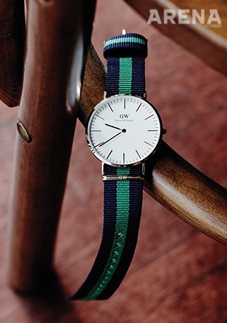 다니엘 웰링턴은 스웨덴 브랜드다. 하지만 시계들을 보면 꼭 단정한 영국 신사를 닮았다. 흰 다이얼 위로 뻗은 직선의 핸즈와 단순한 인덱스는 점잖고, 녹색이 포인트가 되어주는 나토 밴드는 유쾌하다. 가격 23만8천원.