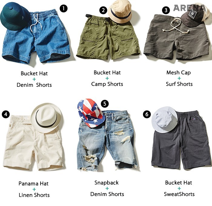 1. 그늘막처럼 서늘한 소재의 투톤 캐주얼 해트 9만8천원 캉골, 데님 소재지만 빡빡하지 않고 품이 낙낙한 쇼츠 24만9천원 서페이스투 에어 by 존 화이트 제품.