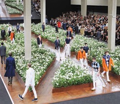 이번 시즌, 꽃의 남자의 여정이 계속된다. 포멀한 이브닝과 오페라 하우스의 세계에서 보낸 겨울에서 햇살과 컬러가 찬란한 여름으로. 우드 파켓 장식 바닥에 눈의 요정이 내려온 듯 무수히 새하얗게 피어난 장미 덤불들, 이 현대적인 프랑스식 실내 정원에 들어선 디올 맨은 새로운 상류층의 세계를 현대적으로 구현한다. 남성복의 규칙을 장난스럽게 전복시키면서도 동시에 전통을 고수한다.