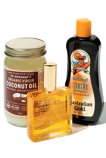 이건 선택 사항이다. 아주 미세한 펄이나 자연스러운 구릿빛 피부 톤의 오일 또는 젤을 잘 활용하면 태닝한 피부가 더욱 윤기 있고 건강해 보인다. 푸석푸석하고 거뭇하게 그을린 피부 톤을 커버하기에도 효과적이다. 특히 쇼츠를 입었을 때, 훤히 드러나는 다리에 발라주면 더 탄탄해 보인다.