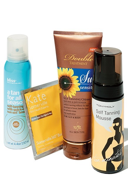 두 가지 방법이 있다. 먼저 셀프 태닝 제품을 사용해 일시적으로 피부에 색을 덧입히는 방법. 제품을 구석구석 피부에 잘 펴 바르기만 해도 마치 여러 번 태닝한 것 같은 피부 톤을 연출할 수 있다. 피부에 색을 물들이는 틴트와 같은 원리다. 기간이 오래 지속되지는 않지만, 일시적으로나마 구릿빛 피부를 누릴 수 있다. 특히 태닝 전 사용하면 효과가 배가된다. 아무래도 까만 피부가 흰 피부보다 자외선을 더 많이 흡수하기 때문. 태닝 시 잘못된 자세로 허옇게 남은 팔이나 허벅지 안쪽, 희끗희끗한 얼룩, 못난 수영복 자국 등을 커버하는 데도 일조한다. 반드시 손가락 발가락 사이까지 꼼꼼히 발라주고, 가급적이면 일회용 장갑을 착용해 손바닥만 유난히 검어지는 일이 없도록 한다. 맨손이라면 사용 후 더 짙게 물들기 전에 손바닥을 깨끗이 씻어낸다. 또 전문 숍에서 기계를 이용해 태닝 스프레이를 뿌리는 방법도 있다. 스스로 하는 셀프 태닝보다 좀 더 균일하게 구릿빛 피부를 만들 수 있지만, 벗겨지기 시작하면 관리하기 쉽지 않다.