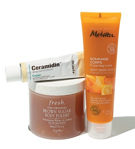 천연 브라운 슈거와 오일이 혼합되어 자극 없이 각질을 제거해주며 보습도 탁월하다. 브라운 슈거 바디 폴리쉬 400g 10만5천원 프레쉬 제품.
