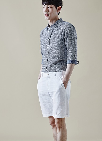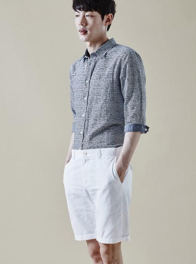 잔잔한 파도를 모티브로 한 패턴의 7부 소매 셔츠와 흰색 쇼츠를 함께 입어볼 것을 권한다. 깔끔한 흰색 쇼츠와 하늘하늘한 소재의 셔츠 조합은 보기만 해도 시원하다. 특히 쇼츠는 기본적인 디자인이라 셔츠뿐 아니라 티셔츠와도 궁합이 좋다.