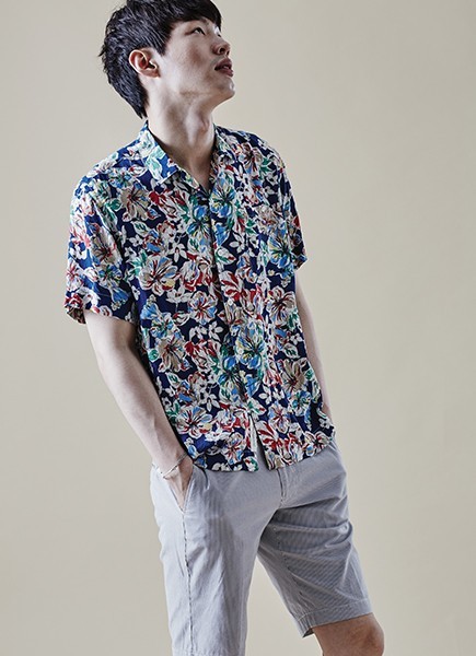잔잔한 꽃무늬가 가미된 반소매 셔츠 17만4천원·시어서커 소재의 쇼츠 12만4천원 모두 본 제품.