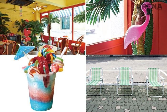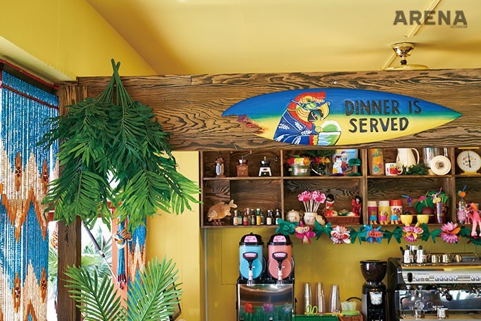 연남동 주택가에서 유독 눈에 띄는 곳이다. 가게 안으로 들어가면 내부는 더 요란하다. 가게 구석구석이 그야말로 알록달록함의 극치. 하와이 해변가를 모티브로 꾸민 카페로 보기만 해도 어쩐지 흥이 난다. 각 테이블마다 놓인 환영의 뜻을 담은 하와이식 화환 ‘레이’와 채광 좋은 넓은 창, 느긋하게 휘휘 돌아가는 실링팬, 바를 따라 길게 이어진 작은 모래사장 등 가게 전체가 ‘알로하’를 외치고 있다.
