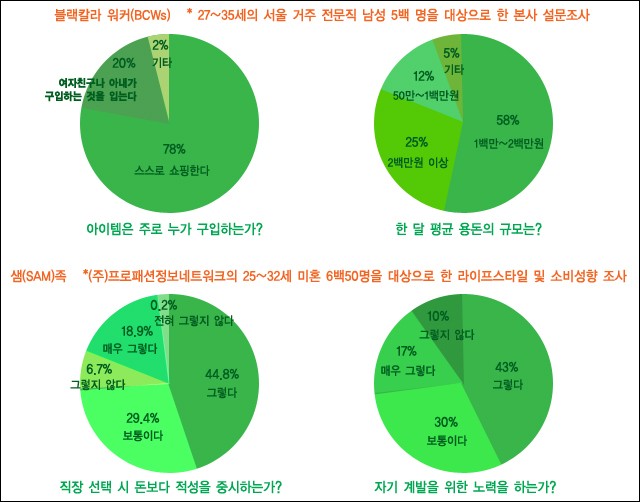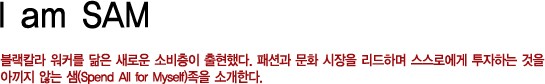 블랙칼라 워커를 닮은 새로운 소비층이 출현했다. 패션과 문화 시장을 리드하며 스스로에게 투자하는 것을 아끼지 않는 샘(Spend All for Myself)족을 소개한다.<br><br>[2006년 9월호]