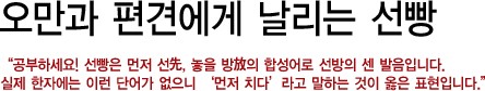 선빵을 선빵이라 부르지 못하고 마쎄이를 마쎄이라 부르지 못한다면 목울대를 타고 넘는 그 톡 쏘는 희열은 완전 포기다.