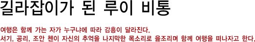 여행은 함께 가는 자가 누구냐에 따라 감흥이 달라진다. 서기, 공리, 조안 첸이 자신의 추억을 나지막한 목소리로 읊조리며 함께 여행을 떠나자고 한다. 루이 비통이 우리와 그녀들의 여행을 중매했다. 지난 1백50년간 루이 비통은 끈임없이 ‘여행’에 대한 이야기를 해왔다. 그래서 만들어진 게 클래식한 여행가방과 시티 가이드 북들이다. 시티 가이드 북을 내놓았던 루이 비통이 이번엔 좀 색다른 발상을 했다.